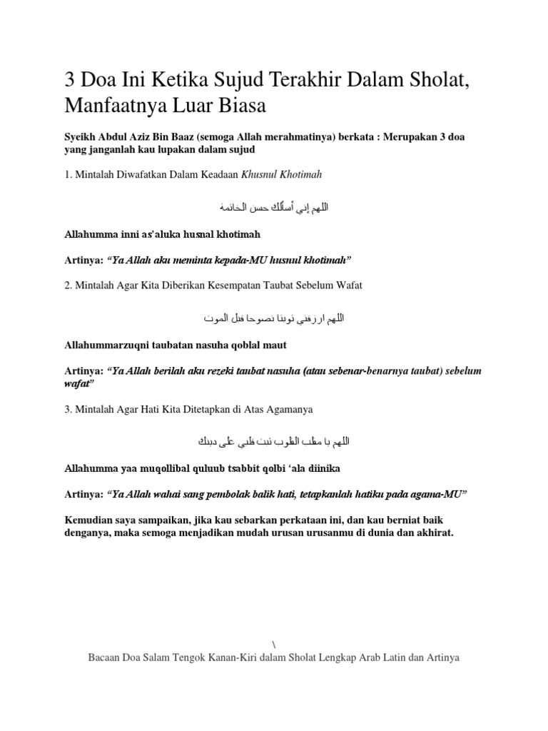 3 Doa Ini Ketika Sujud Terakhir Dalam Sholat from imgv2-2-f.scribdassets.com Tertib dalam menjalankan sholat 15. Mintalah diwafatkan dalam keadaan khusnul khotimah. Menurut syeikh abdul aziz bin baaz, ada 3 doa yang tidak boleh dilupakan umat islam saat melakukan sujud terakhir.